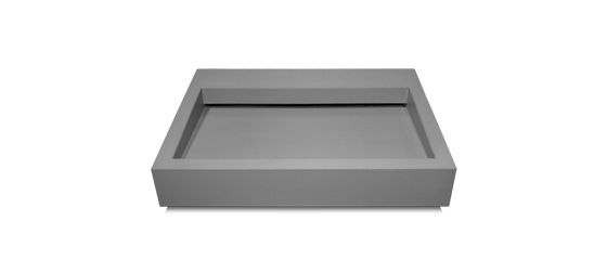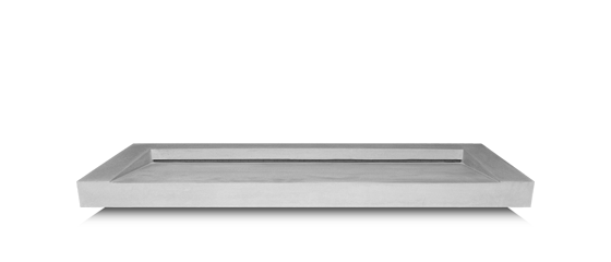 Bei Betonwaschbecken mit einem Schlitzablauf befindet sich unter dem Waschbecken eine integrierte Ablaufrinne aus Edelstahl mit einem 1 1/4 Zoll Standardgewinde passend für jeden handelsüblichen Siphon.
